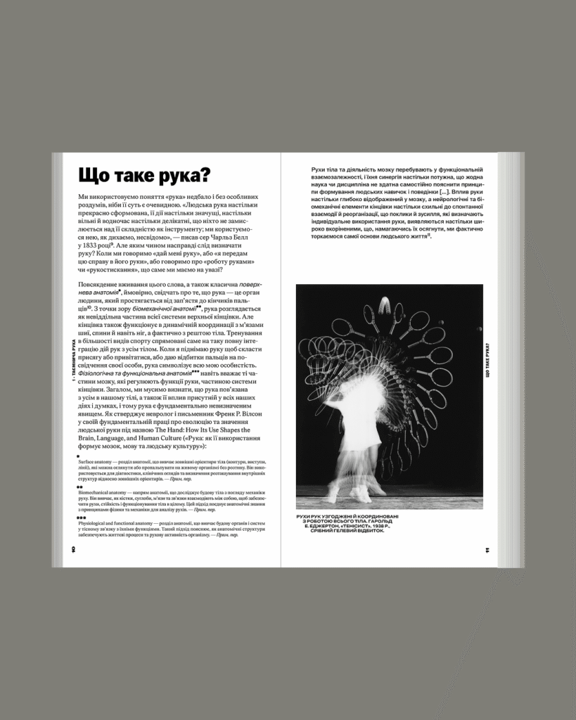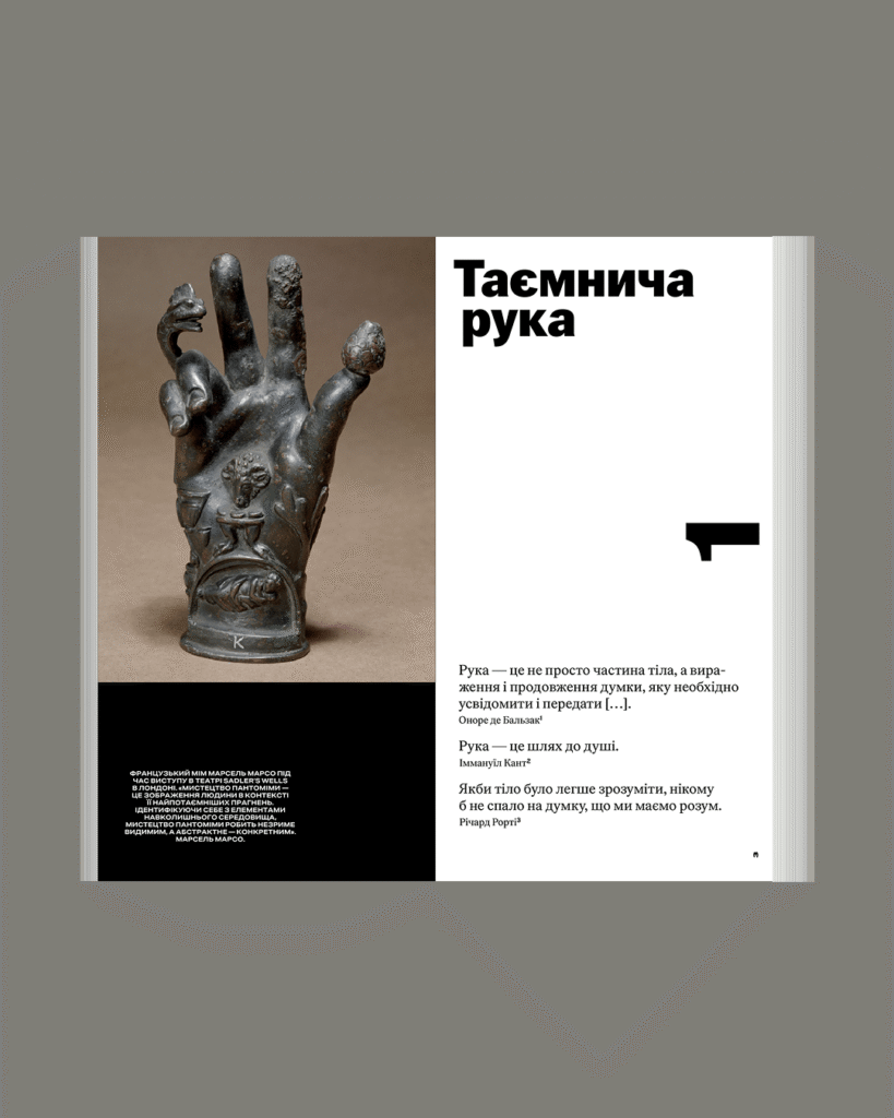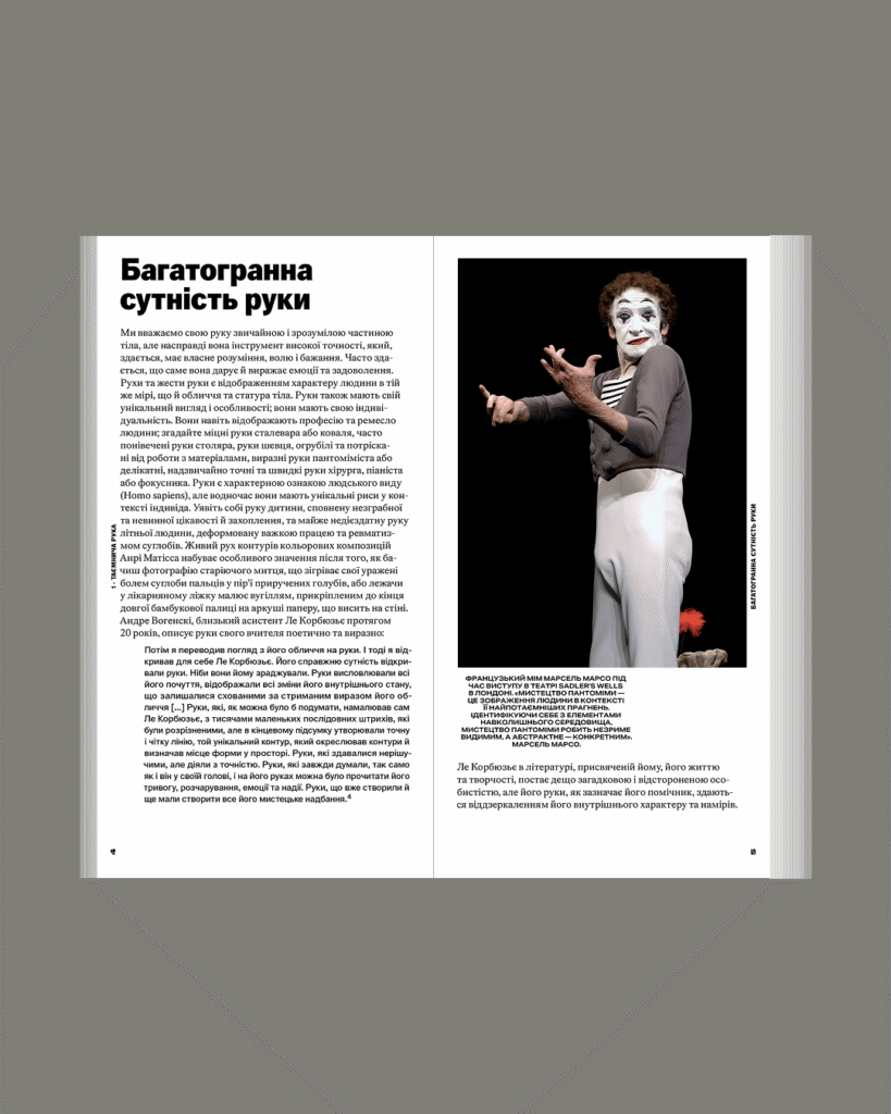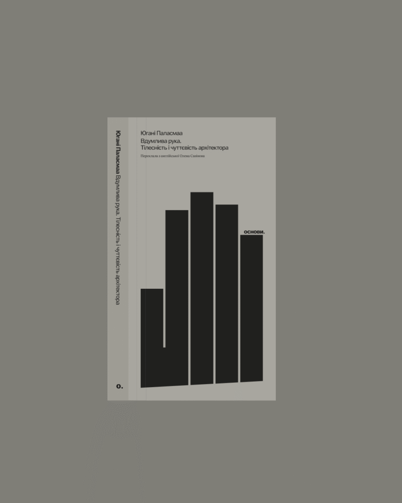 Югані Паласмаа пропонує зробити крок назад, щоб обдумати сучасні підходи до архітектури, і зрозуміти їхні слабкі місця — замкненість у собі й нехтування реальним світом навколо. Ключ до глибокого і уважного мислення, з якого народжуються ідеї, — в умінні взаємодіяти з простором і матеріалом без діджитал-медіумів.