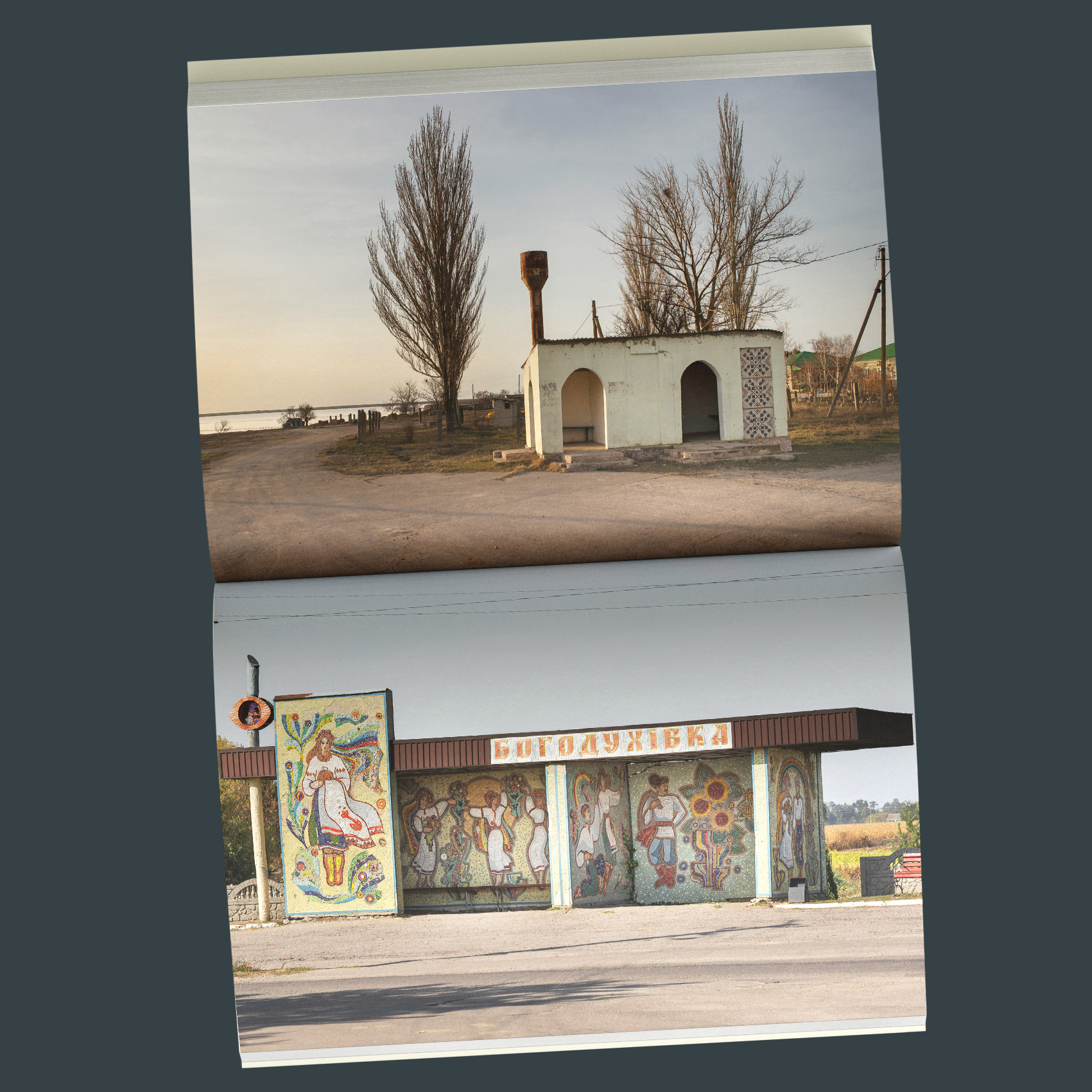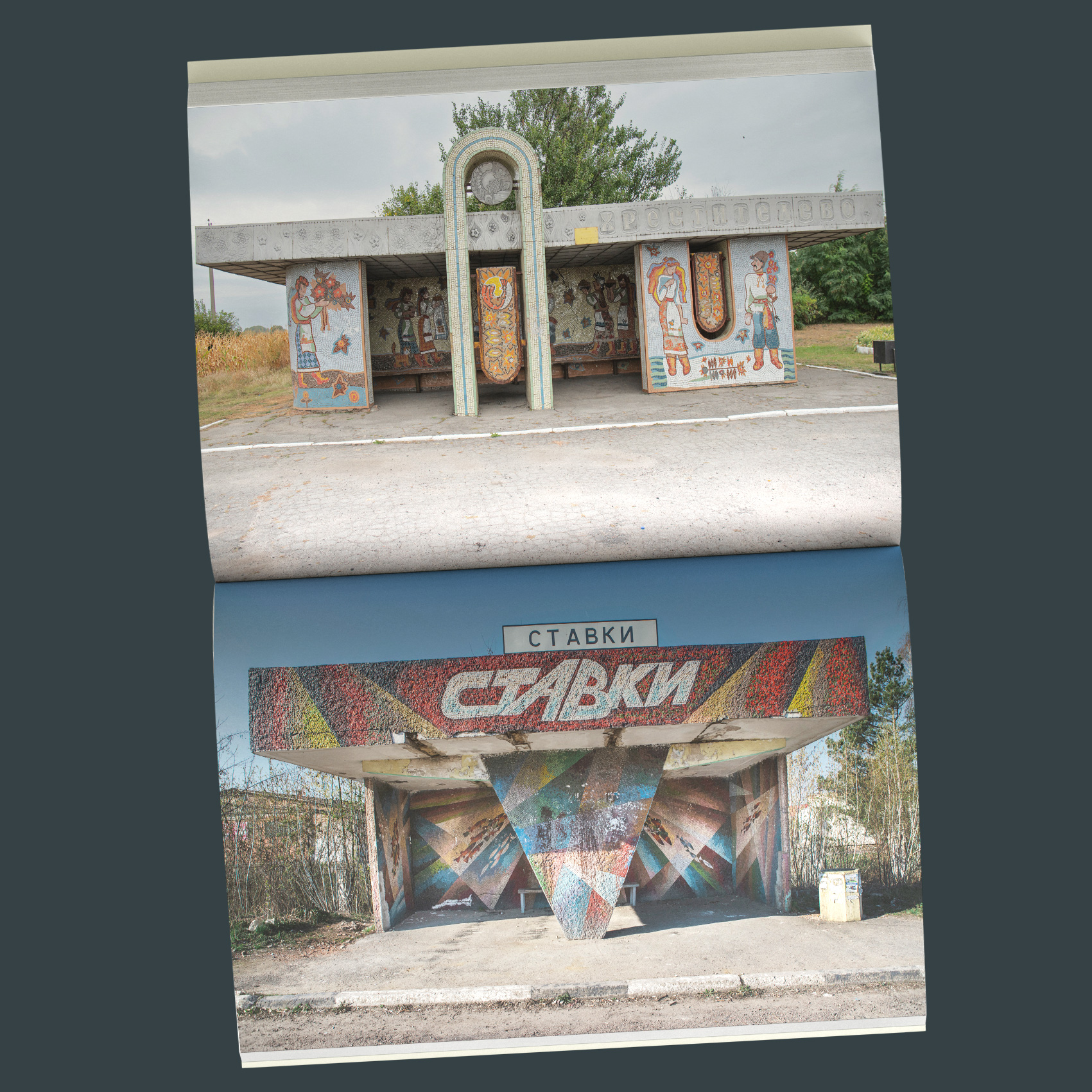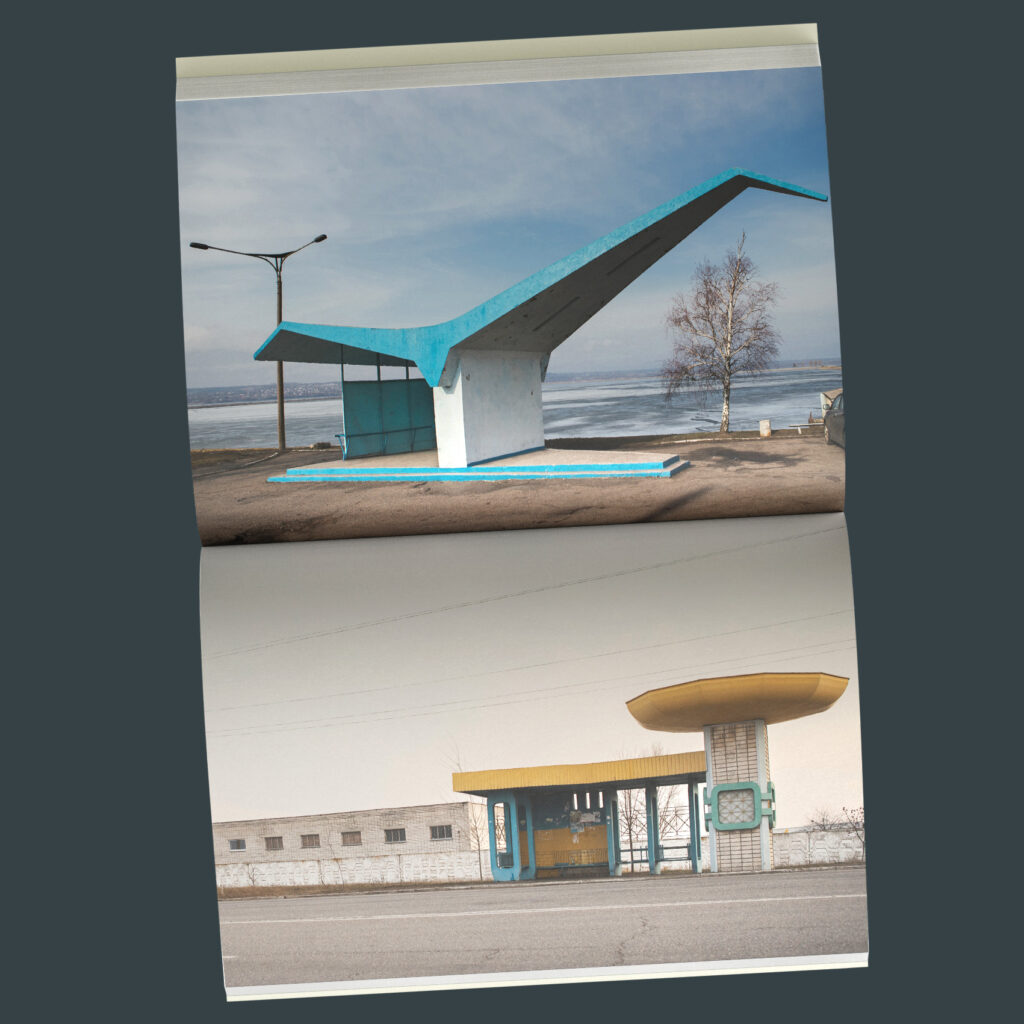 Впродовж 10 років, подорожуючи Україною, незалежний фотограф і дослідник українського монументального мистецтва Євген Нікіфоров задокументував особливі місця очікування і зустрічей, розкидані узбіччями, — автобусні зупинки. Із понад тисячі знайдених і відзнятих унікальних архітектурних обʼєктів до видання увійшли близько двохсот найцікавіших зображень.