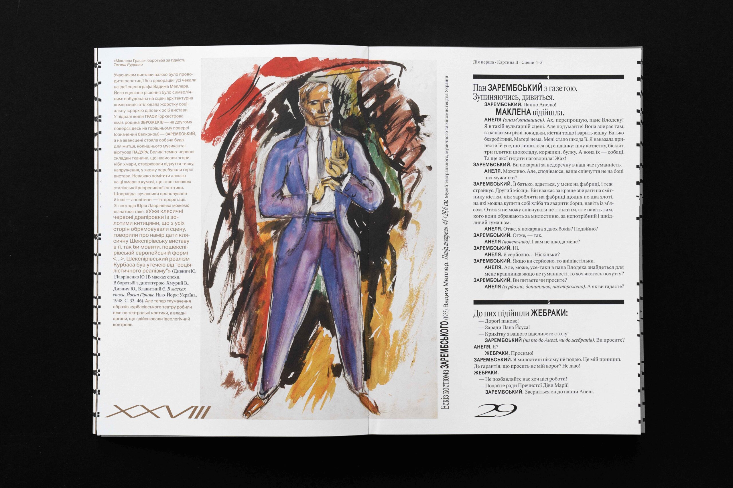 Основну канву видання створює есе головної зберігачки Музею театрального, музичного та кіномистецтва України Тетяни Руденко, де вона розповідає про історію та контекст створення обох драматичних творів.
