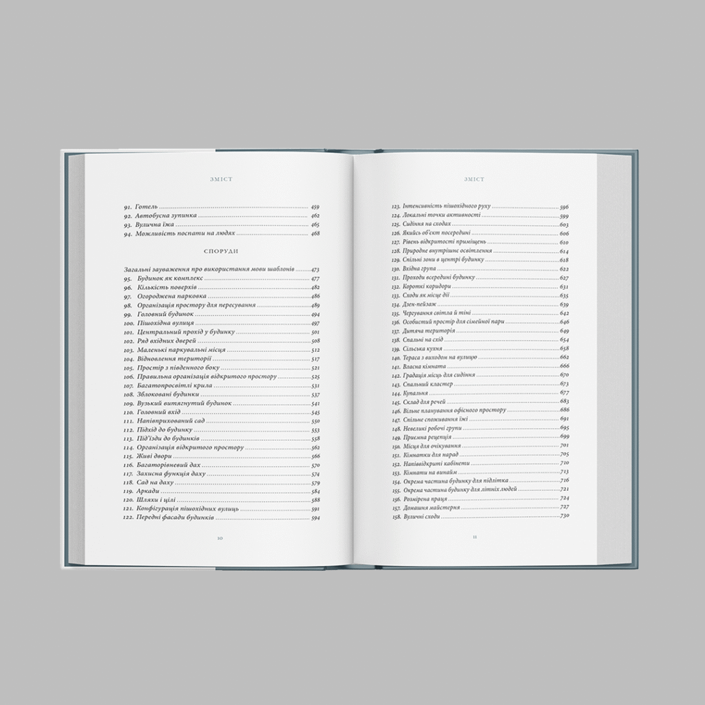 «Мова шаблонів» має в архітектурі той самий статус, що «Хрещений батько» в кінематографі. Цю культову книгу вперше опублікувало видавництво Оксфордського університету в 1977 році, і відтоді вона неодмінно входить у списки найвпливовіших. (Назвати українське видання книжкою заважають 1144 сторінки і 900 ілюстрацій.)